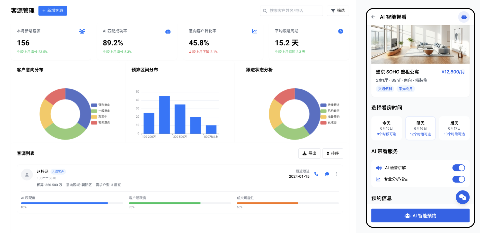 客源一键录入、个性化房源匹配